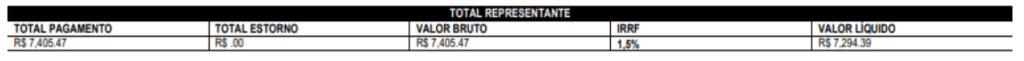 A comissão é de 8% (oito por cento), sobre a venda liquida da nota fiscal correspondente aos produtos intermediados, entende-se por “valor líquido” o valor obtido após a dedução de todos os encargos e impostos incidentes sobre a operação.