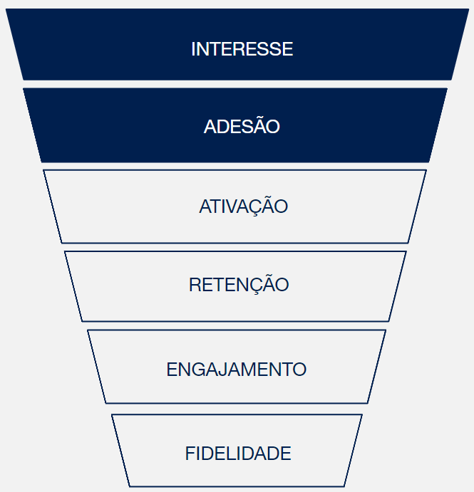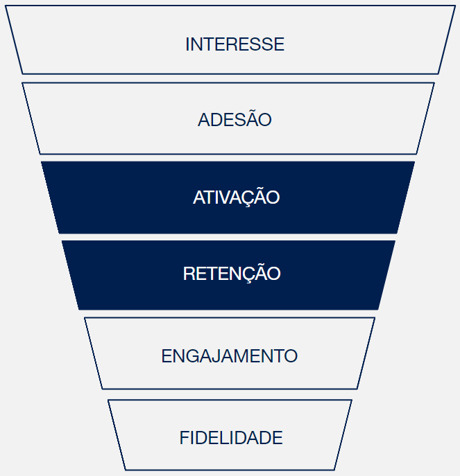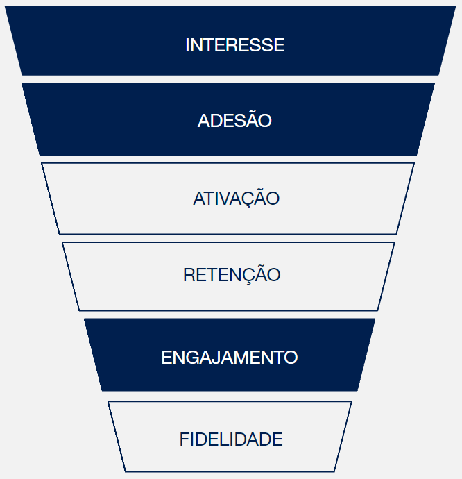 Em cada fase do funil de relacionamento utilizamos estratégias com o objetivo de conquistar a fidelidade do cliente e beneficiá-lo em três pilares: