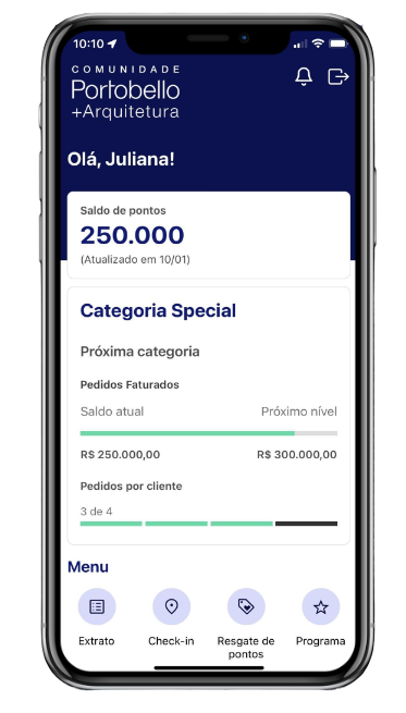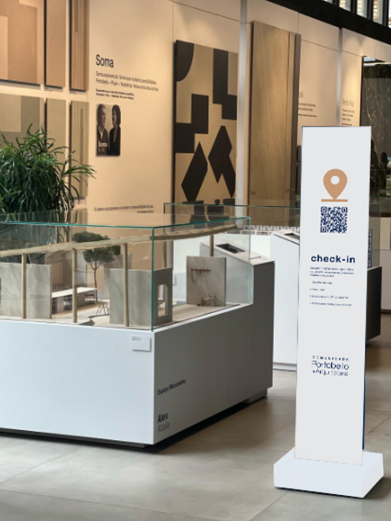 A comunidade Portobello+Arquitetura é pioneira em oferecer a pontuação por presença em lojas ou eventos promovidos pela Portobello Shop. Para pontuar, o especificador deve realizar o check-in via aplicativo.