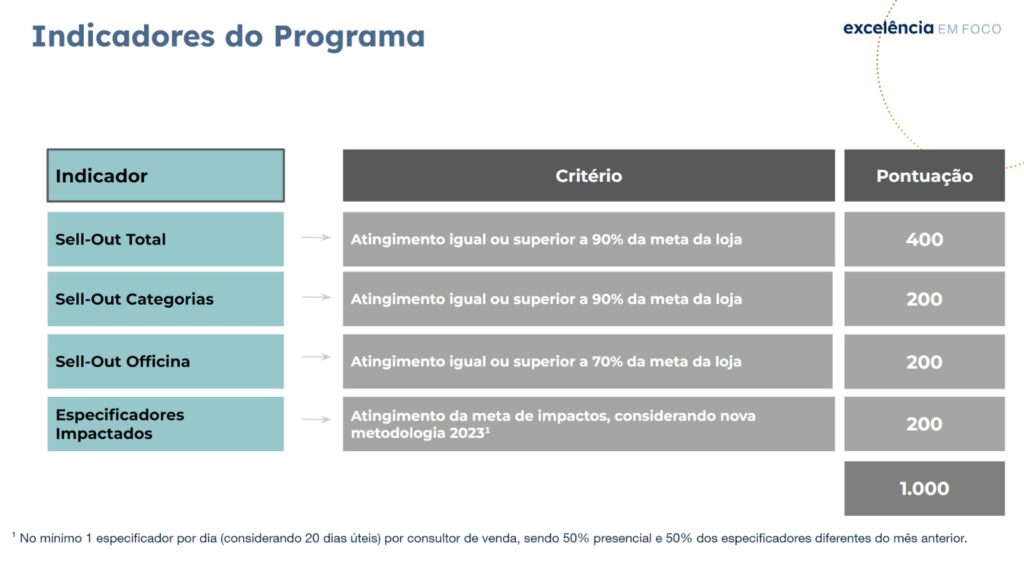 O Programa Excelência em Foco reúne ações de desenvolvimento individual e em grupo, presenciais e à distância – definidas a partir dos principais gaps apontados no Programa de Excelência. Desenvolvido para promover as melhores práticas e ampliar a sinergia entre áreas de apoio e lojas, o programa coloca gerentes e franqueados como protagonistas no processo de melhoria contínua – visando melhorar a gestão de pessoas, alavancar a performance e acelerar o crescimento.
