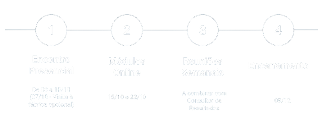 Após o encontro presencial, teremos 2 módulos online. Os conteúdos dos módulos complementam a experiência presencial e reforçam processos importantes dentro do Programa de Excelência.