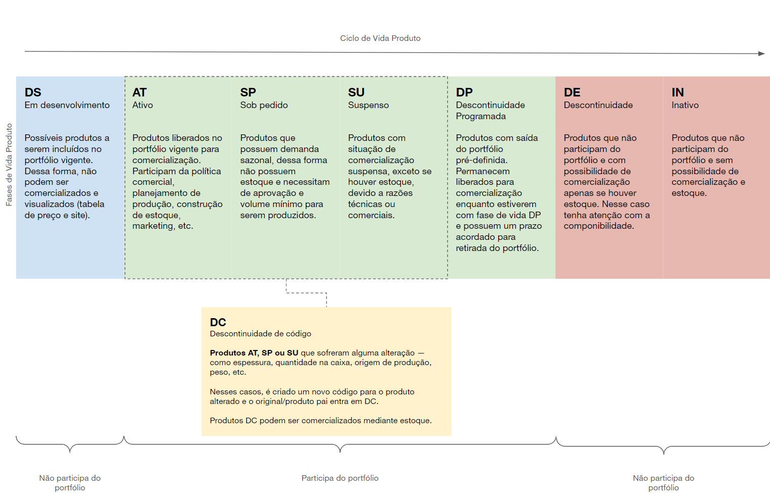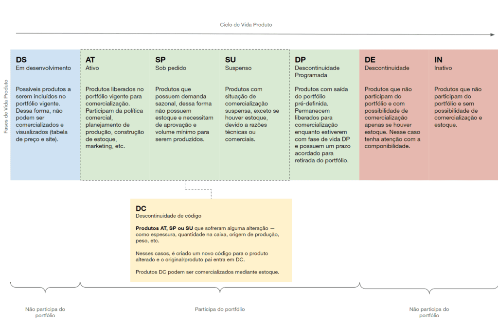 A informação sobre Fase de Vida do produto impacta no estoque e data de entrega para o cliente final. Por isso uma comunicação transparente é essencial.