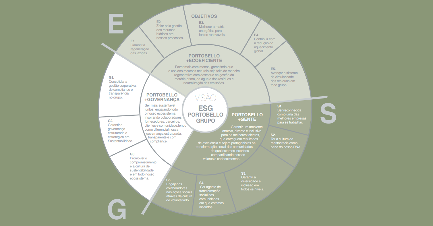 Ser mais sustentável juntos, engajando todo o ecossistema Portobello, inspirando colaboradores, fornecedores, parceiros, clientes e comunidade, tendo como diferencial a governança estruturada, transparente e com compliance.