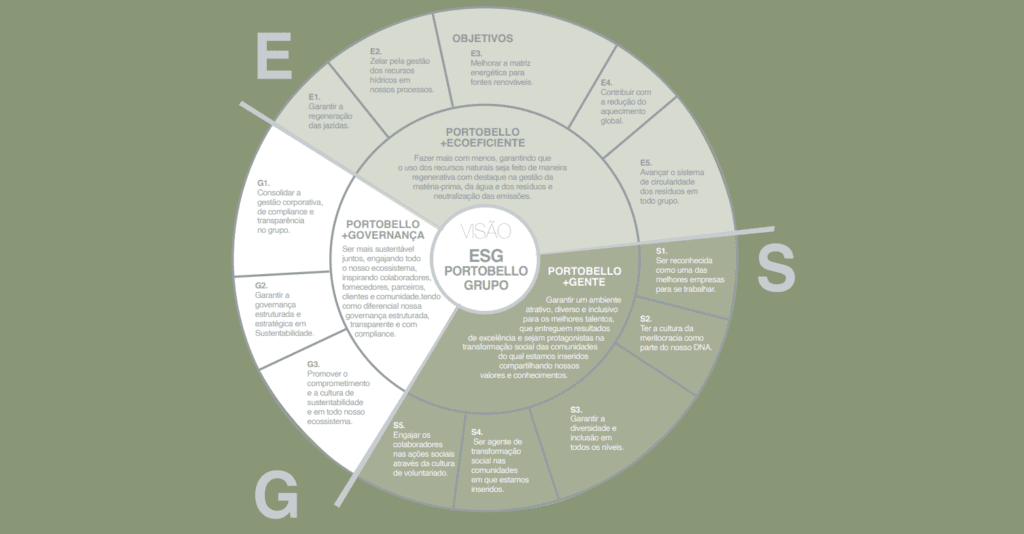 Ciente do seu papel de referência no mercado, o Portobello Grupo decidiu adotar uma postura ainda mais ambiciosa com o seu Plano de Sustentabilidade. Lançado em 2022, este planejamento traz metas considerando todas as unidades de negócio e três pilares prioritários baseados no framework ESG (sigla em inglês para meio ambiente, social e governança). Os Objetivos de Desenvolvimento Sustentável também são usados como guia e o Plano dialoga com a matriz de materialidade da empresa.