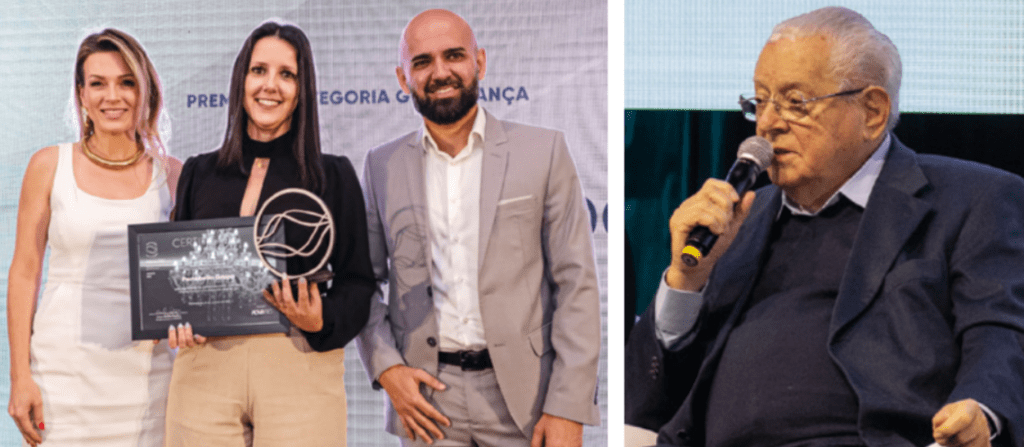 Scheila Orlandi, coordenadora de Sustentabilidade do Portobello Grupo, recebendo o prêmio ADVB/SC ESG, pela Semana da Sustentabilidade, Chapecó | SC