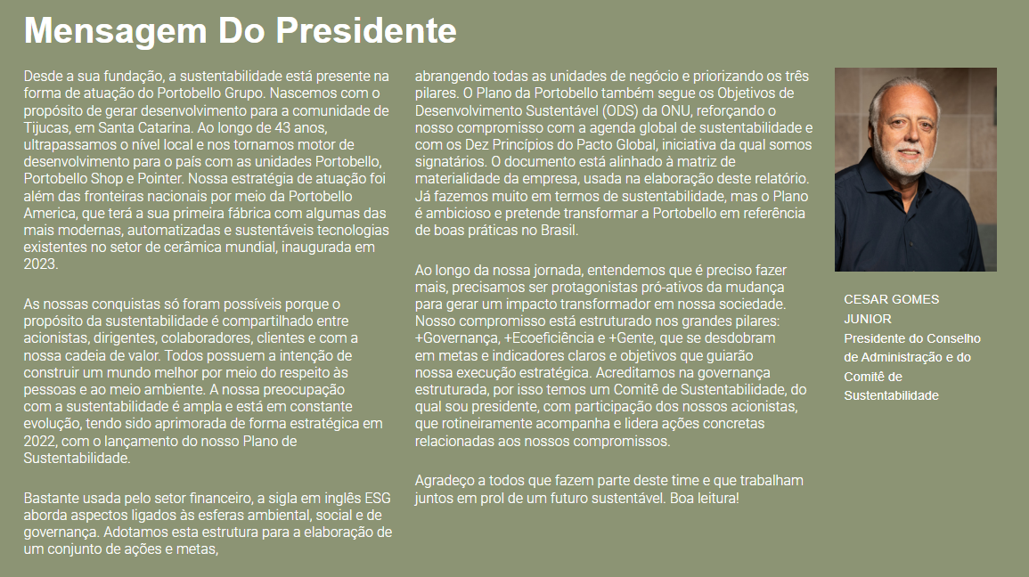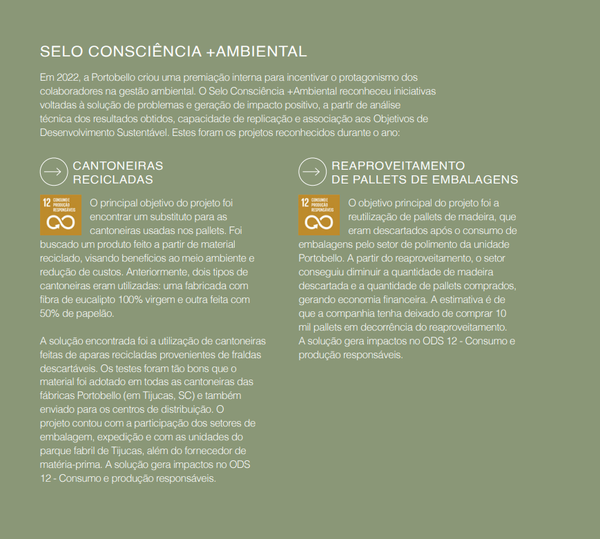 Para saber mais informações, acesse o Relatório de Sustentabilidade no link abaixo e conheça na íntegra todos os projetos e resultados do Portobello grupo.