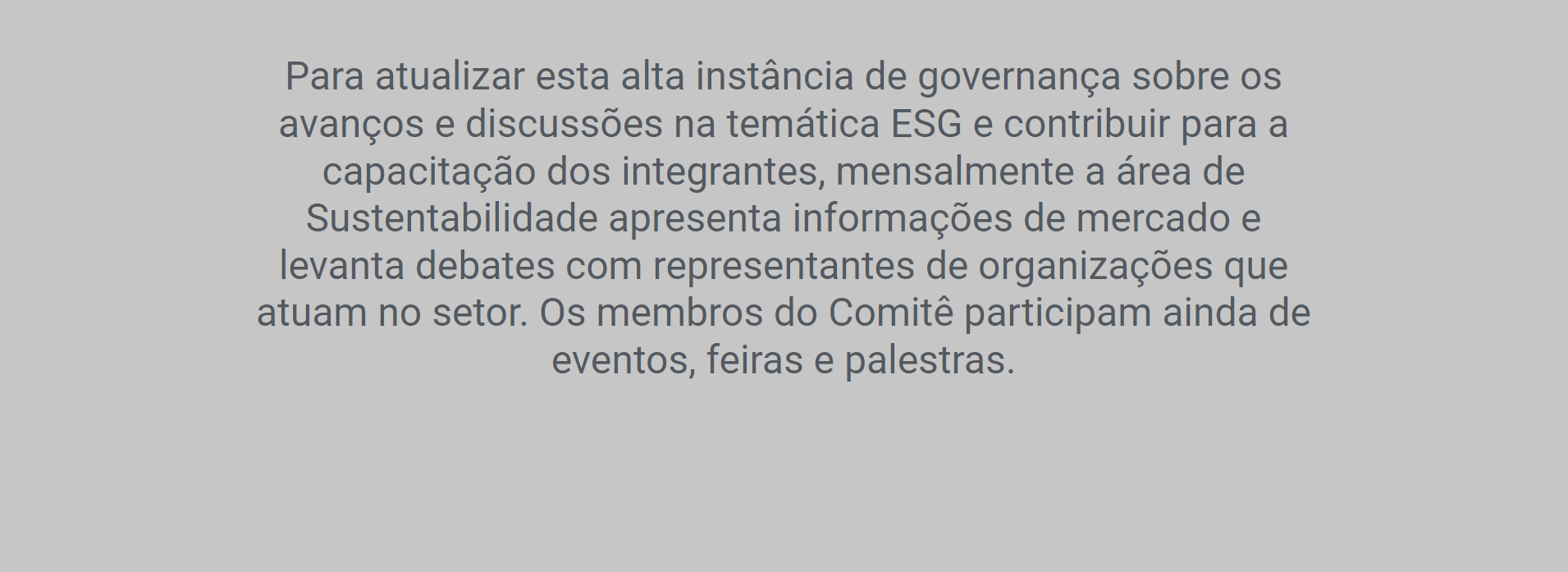 *Para visualizar os comites e os responsáveis , acesse o relatório anual de sustentabilidade disponível no final deste curso.