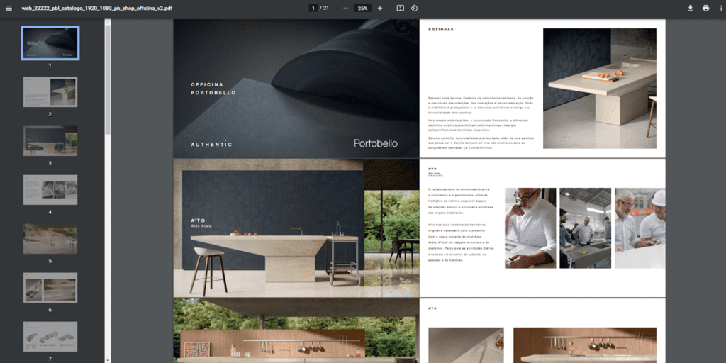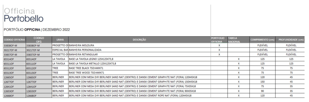 Os catálogos da Officina Portobello são em formato PDF e contemplam imagens, especificações e códigos de todos os itens.