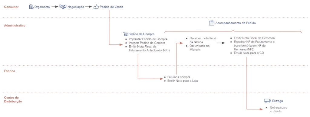 Após o cenário mais comum do Pedido de Compra (Pedido de Compra usando um pedido de venda), o Administrativo deve emitir a Nota de Faturamento Antecipado, no sistema Microvix, para fins de documentação e contabilidade.