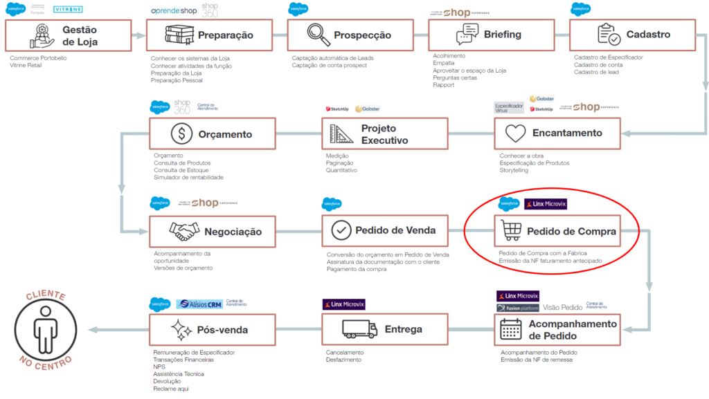 Para que o cliente receba o produto adquirido, é necessário que a Loja faça a compra do produto com a fábrica da Portobello, no Salesforce.