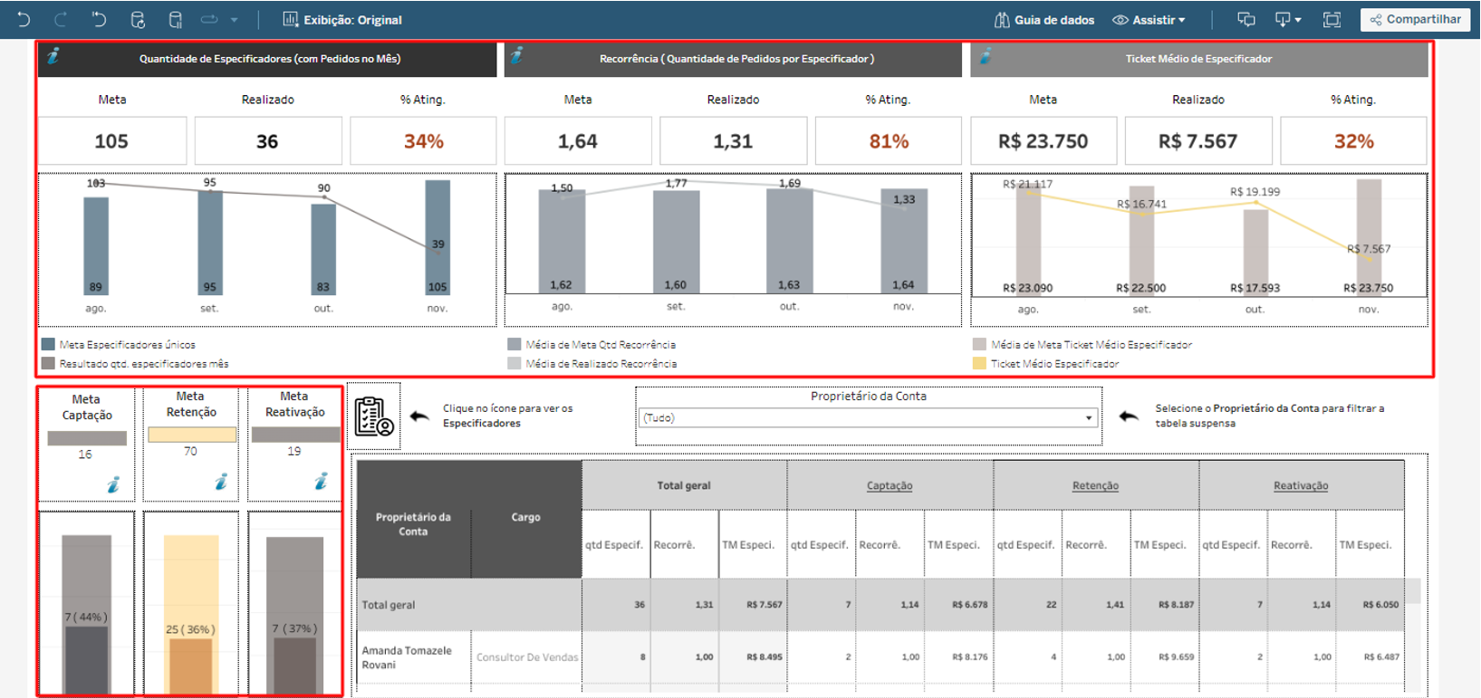 Tanto a Equipe de Vendas, quanto a Liderança da Loja possuem dashboards/painéis específicos para fazer o gerenciamento dos especificadores e dos impactos. Confira: