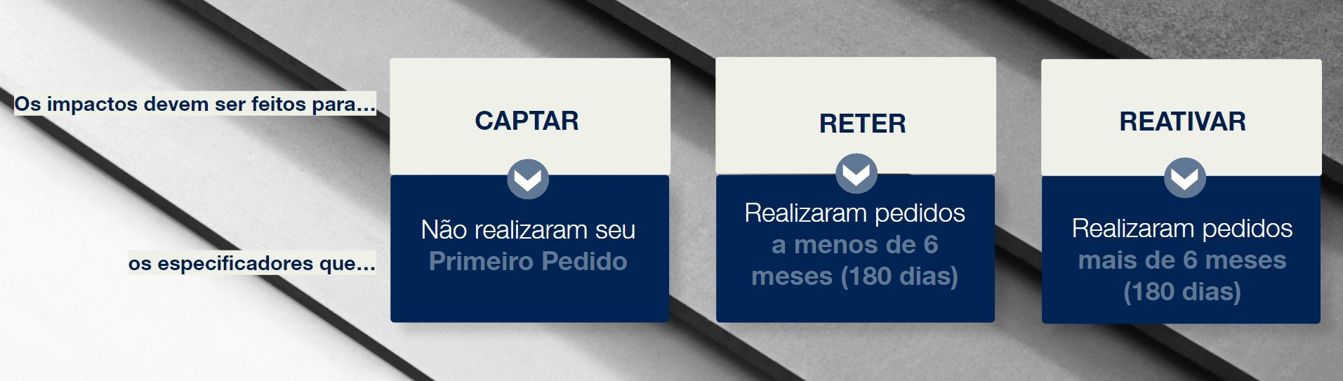 Aqueles que já fizeram compra há mais de 180 dias. Esses são os Especificadores/as que não possuem mais um relacionamento tão bom ou próximo com a marca, eles devem ser reativados para o relacionamento ser recuperado.